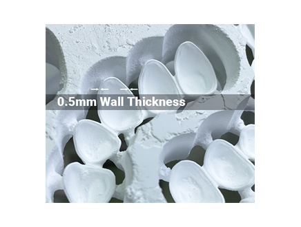 3D Pro ML wall thickness to 0.5mm, such body layer can increase its translucency even more, the minimum thickness recommended for veneer indication or anterior crowns.