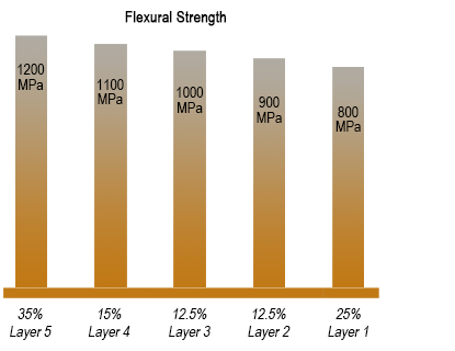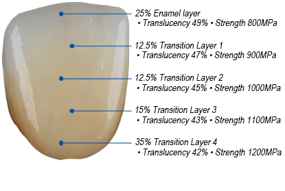 The seamless multilayer technology enables no transition lines and high flexural strength 1,200MPa ensuring all indications can be covered.